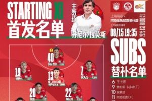 中超联赛第21轮 上海海港VS河南首发及替补队员名单