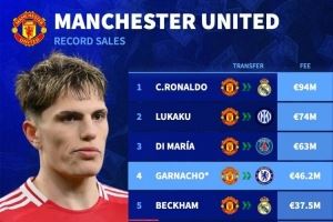 4620万欧!加纳乔将成为曼联出售第四贵球员,C罗9400万欧最贵
